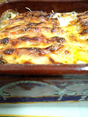 Num tabuleiro coloque um pouco de molho béchamel a cobrir o fundo e vá colocando os canelones. Quando terminar cubra com béchamel, polvilhe com parmesão acabado de ralar e orégãos.